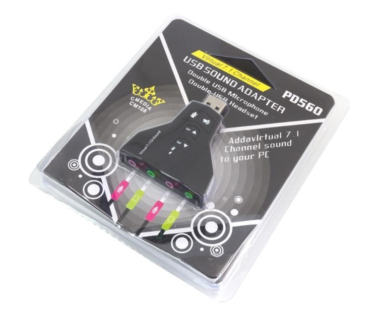 Visiškai nauja, aukštos kokybės USB garso plokštė su „Virtual 7.1CH“ sistema. Įrengtas dvigubas garso įvestis ir išvestis. Puikus produktas kompiuteriams ir nešiojamiesiems kompiuteriams, kuriuose nėra vidinės garso plokštės!