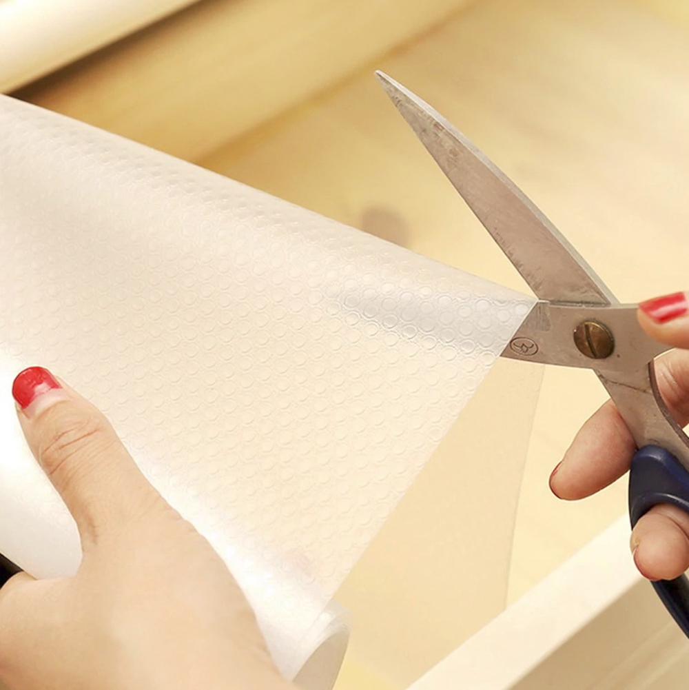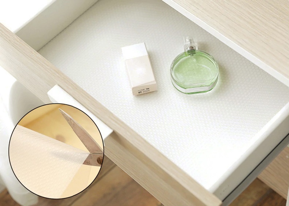 Skaidrus apsauginis kilimėlis stalčiams. Efektyviai apsaugo spintelių vidų nuo netyčinio subraižymo. Tai padeda palaikyti tvarką spintelių kampuose – tiesiog nuimkite kilimėlį ir purtykite nuo jo nešvarumus.
