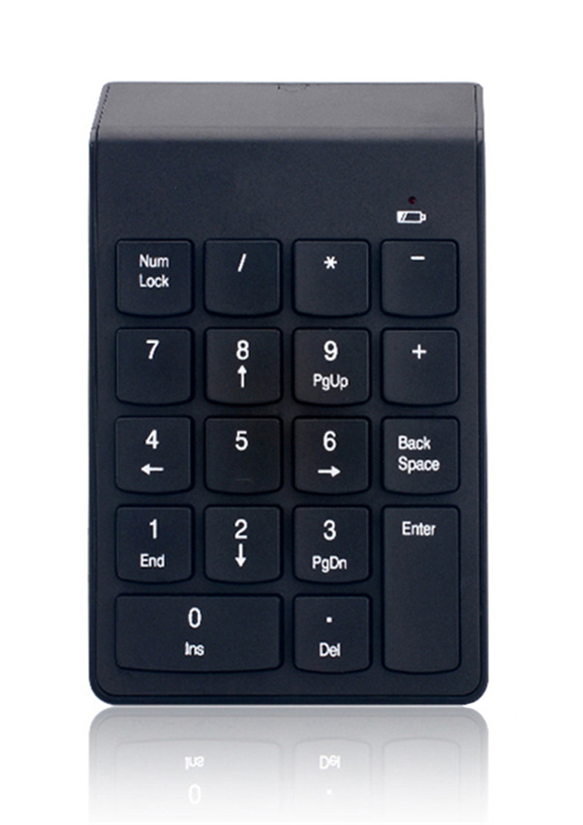 Belaidė USB skaitinė klaviatūra. Puikiai papildo neužbaigtas planšetinių kompiuterių ir nešiojamųjų kompiuterių klaviatūras su papildoma skaitine klaviatūra. Įrankis yra ypač paprastas naudoti, nereikalauja papildomos konfigūracijos. Tiesiog prijunkite USB adapterį prie bet kurio kompiuterio USB prievado, kad prisijungtumėte prie klaviatūros per „Bluetooth“.