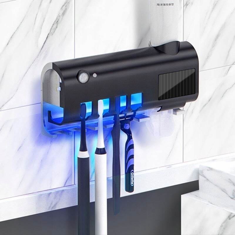 Dezinfekcinis dantų šepetėlių laikiklis ir dantų pastos dozatorius – rinkinį sudaro