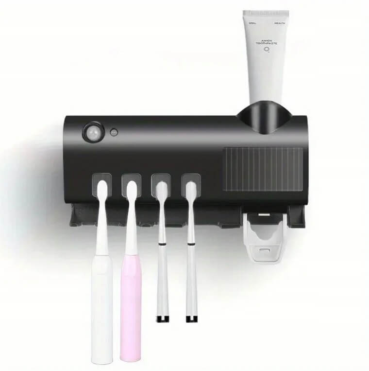 - Dantų pastos dozatorius, dantų šepetėlių dezinfekatorius;