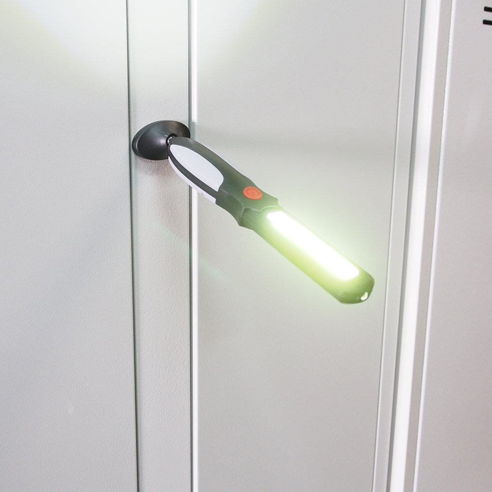Patikima, šviečianti LED lempa „pasidaryk pats“ entuziastams, aprūpinta stipriais COB LED diodais – nepakeičiama dirbtuvėse ir servisuose ar „pasidaryk pats“ garažuose. Įrengtas patogus, fizinis jungiklis su sklandžiu šviesos galios reguliavimu ir įmontuota baterija, kuri leidžia daug lengviau apšviesti darbo vietą toliau nuo rozetės. Besisukantis pagrindas (360 laipsnių plokštumoje) buvo aprūpintas stipriu magnetu, leidžiančiu šviestuvą montuoti ant metalinio paviršiaus.