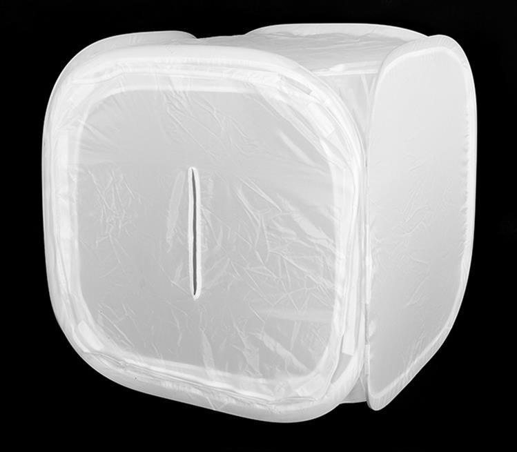 Lengvas ir taupus būdas fotografuoti produktams. Puikiai tinka įvairių daiktų bešešėliniam fotografavimui. Atspindintis ir šviesą išsklaidantis palapinės paviršius pašalina šešėlius ir švelnina foną. Lengvai išlankstoma, o nenaudojant užima nedaug vietos.