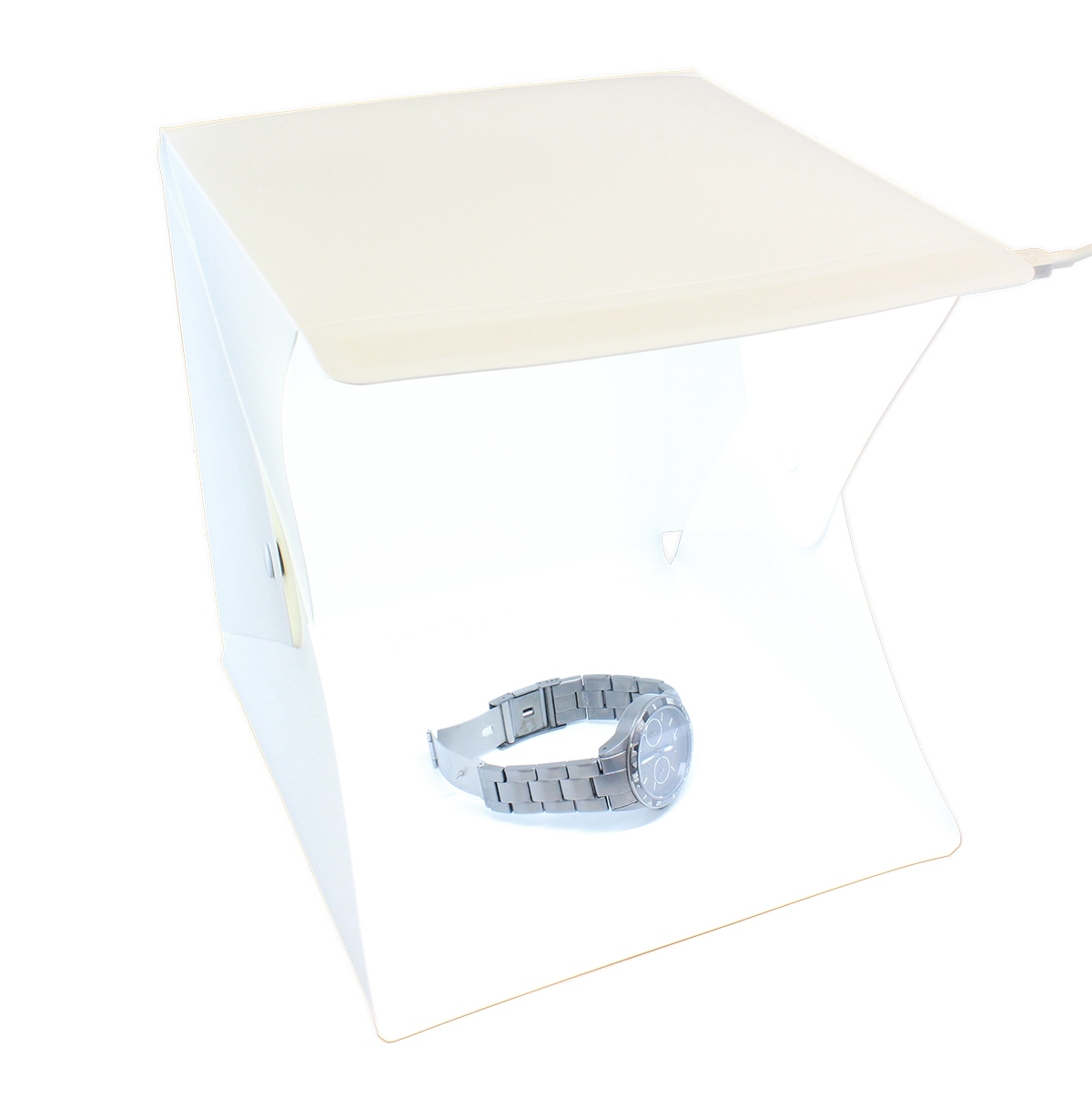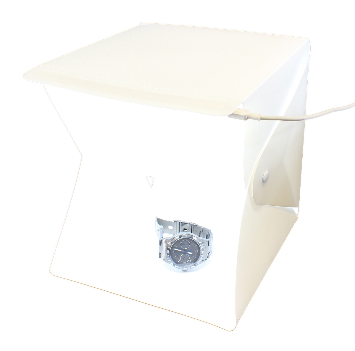 Kompaktiška, plastikinė, sulankstoma foto dėžutė su LED apšvietimu, skirtą fotografuoti papuošalams, bei kitiems nedideliems daiktams. Tai nedidelė, nešiojama foto studija , kuri lengvai susilanksto ir neužima daug vietos.