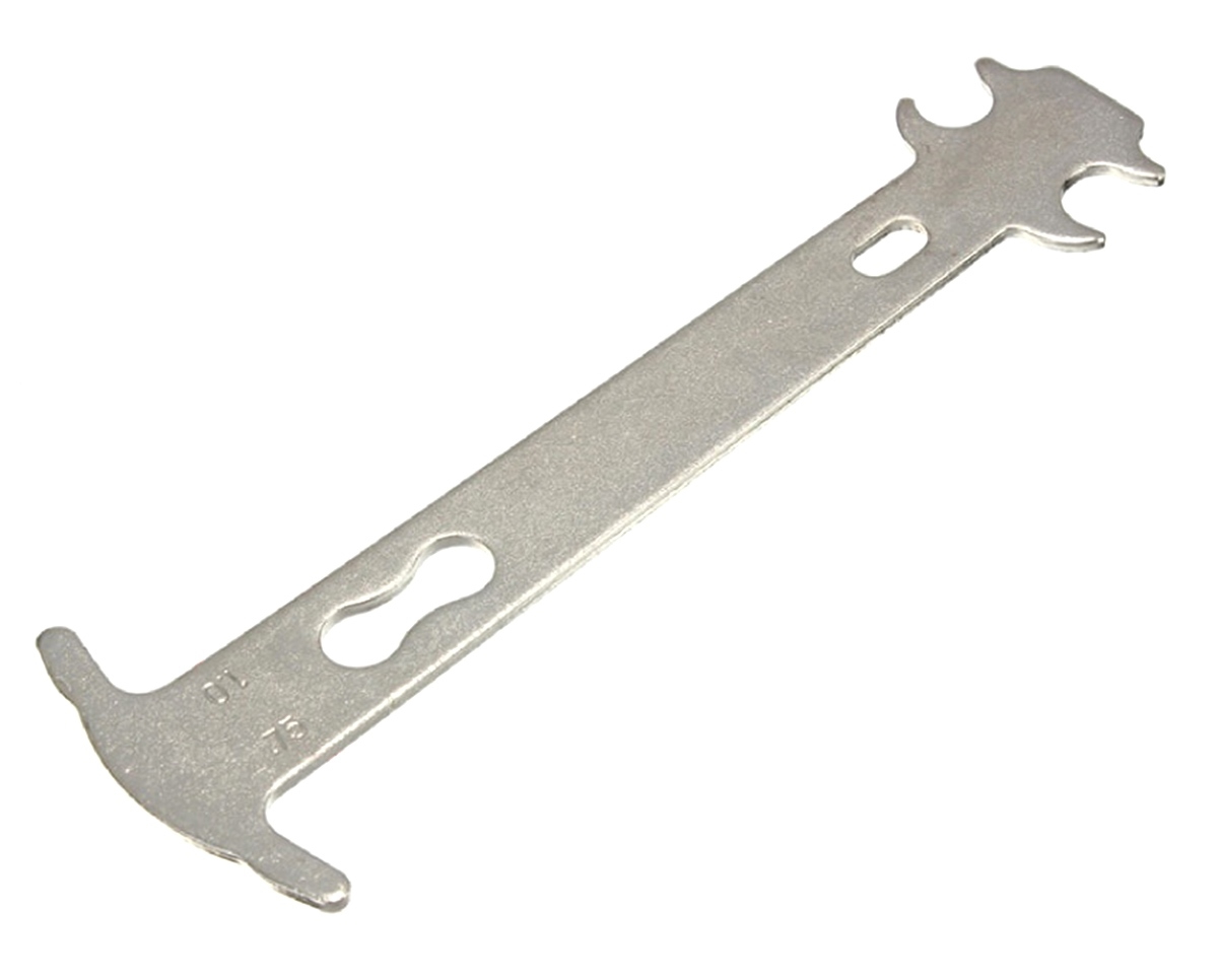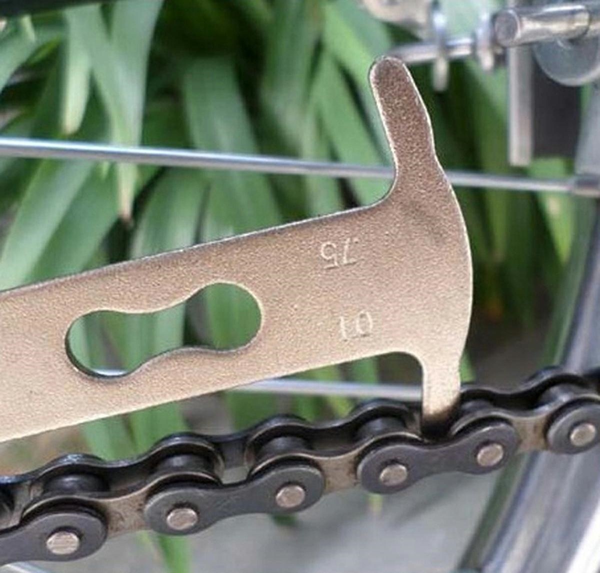 Kompaktiška priemonė dviračio grandinės kokybei patikrinti. Labai paprasta naudoti – tiesiog įkiškite suapvalintą įrankio galą į grandinės grandį, o kitą įrankio galą padėkite ant ištemptos grandinės. Indikatorius rodo nusidėvėjimo laipsnį 75% ir 100% skalėje. Jei skaitiklio galas nėra tarp jungčių, grandinė yra puikios būklės.