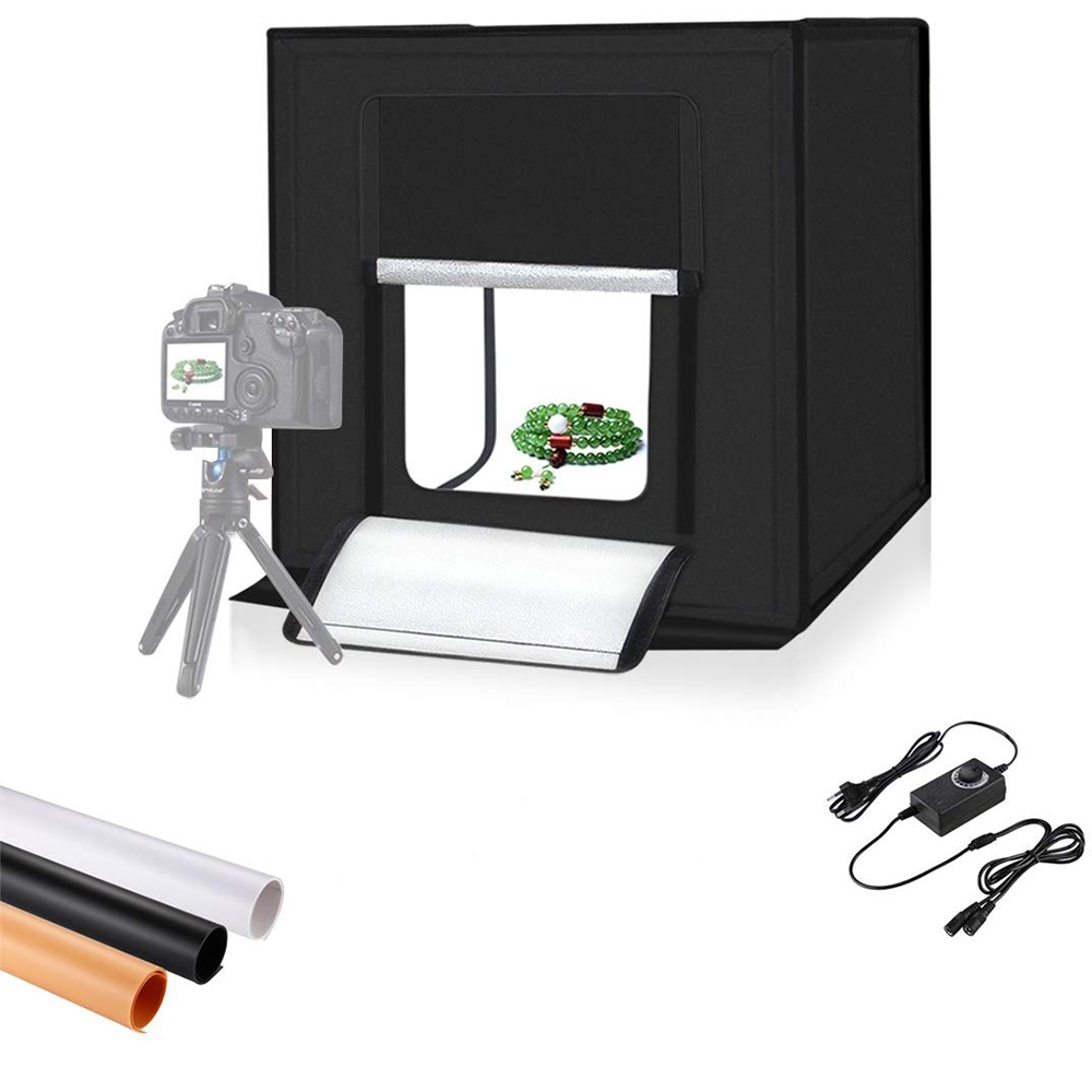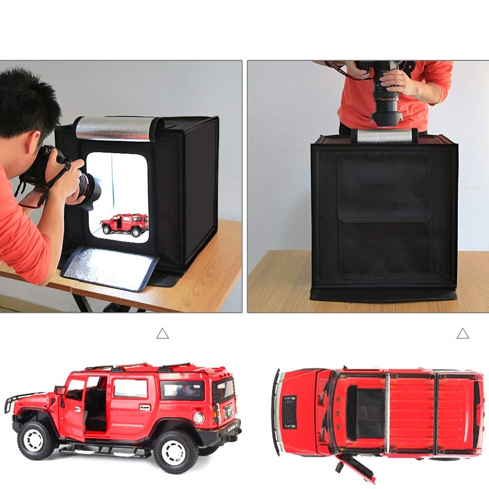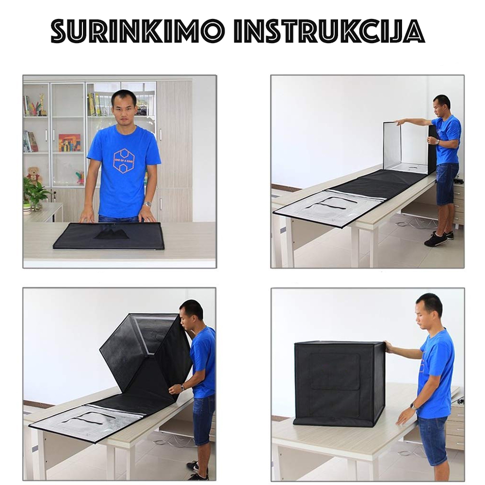 Ši foto studija skirta įamžinti kokybiškai Jūsų produktus, namų sąlygomis. Nesvarbu ar fotografuosite su telefonu ar su fotoaparatų, nuotraukos bus daug kokybiškesnės, kadangi dėžutė yra pritaikyta fotografuoti daiktams ir joje yra reguliuojamas LED apšvietimas.