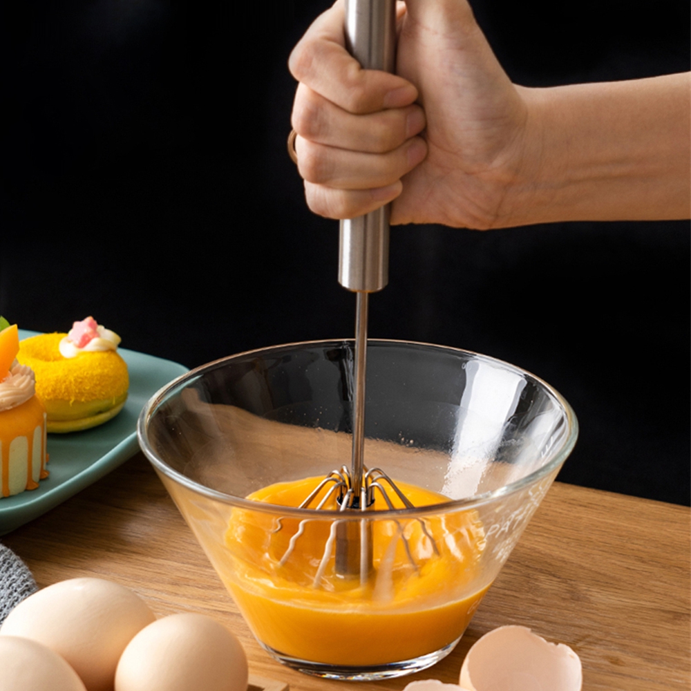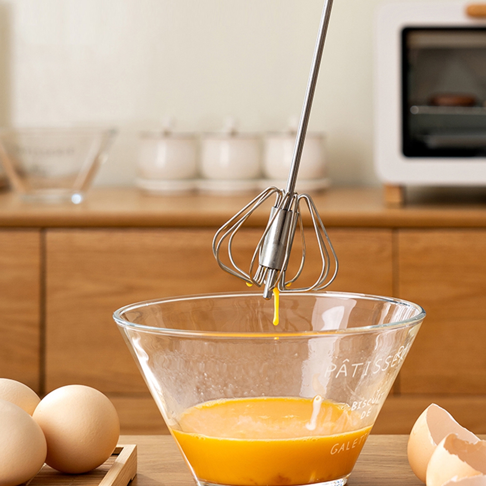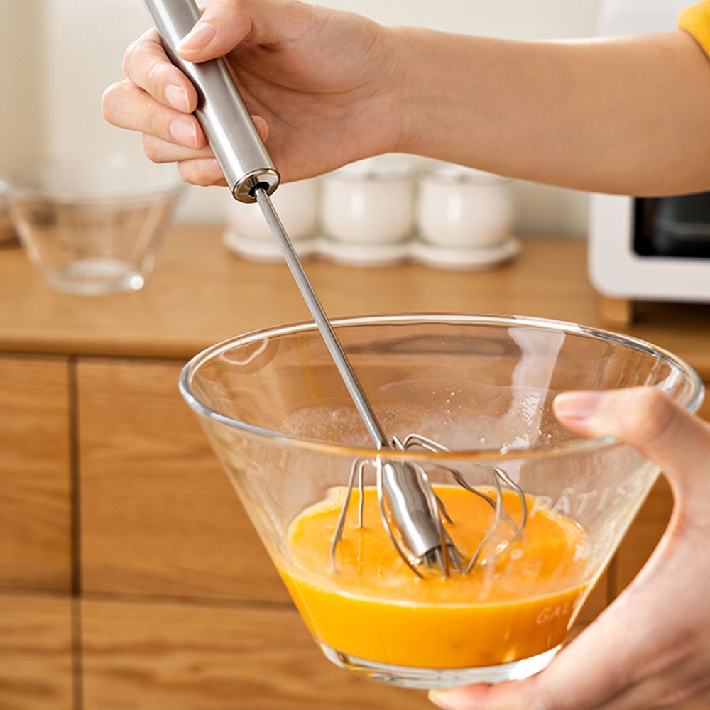 Greitas ir patogus virtuvės įrankis skirtas plakti kiaušinius, tešlą, grietinėlę ar padažus be elektros. Paspaudus rankeną, plakimo mechanizmas automatiškai sukasi, todėl maišymas vyksta greitai ir be pastangų.