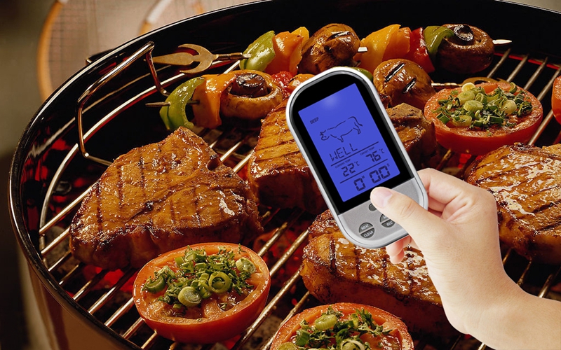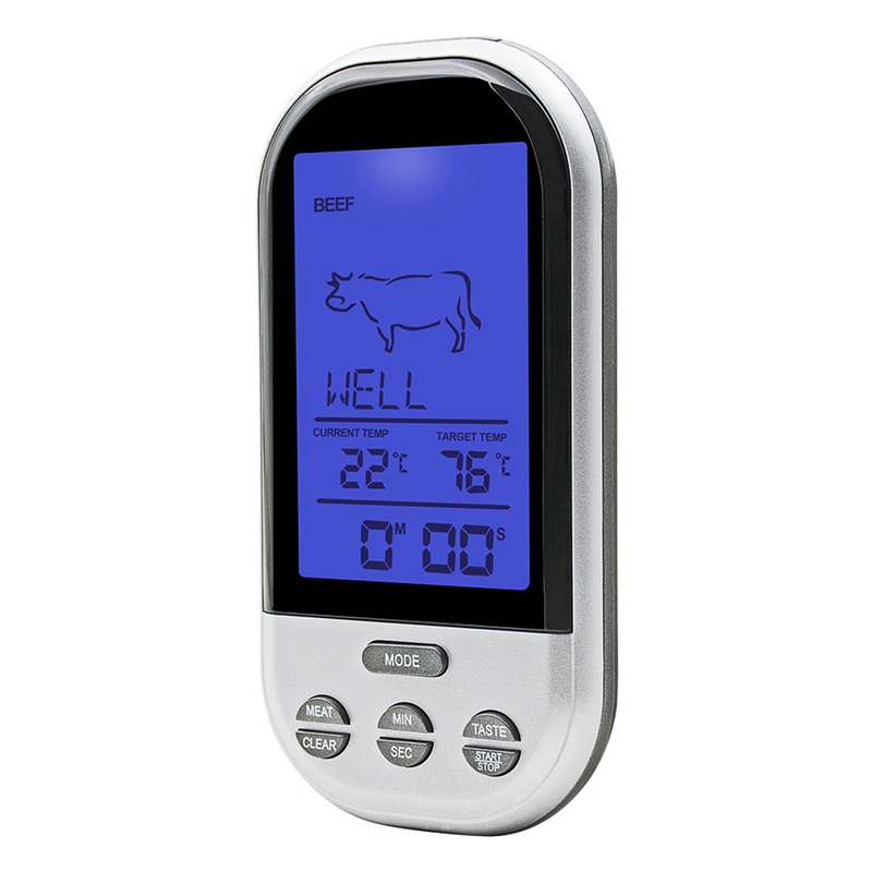 Elektroninis, tikslus termometras su LCD ekranu, puikiai tinka maisto ruošimui. Idealiai tinka matuoti temperatūrą mėsos, bei kitų paruoštų patiekalų.