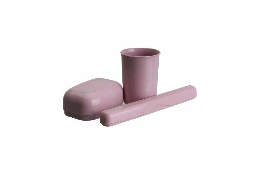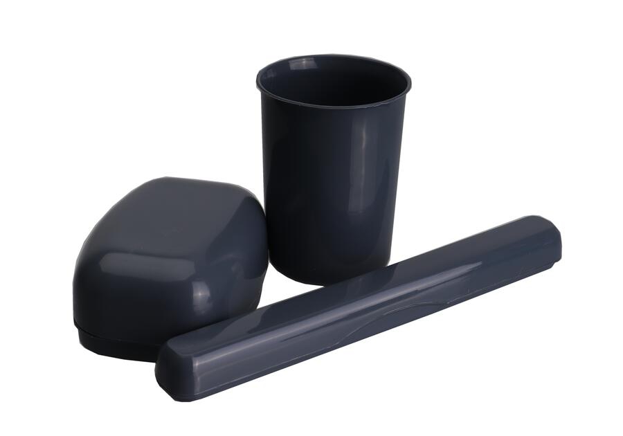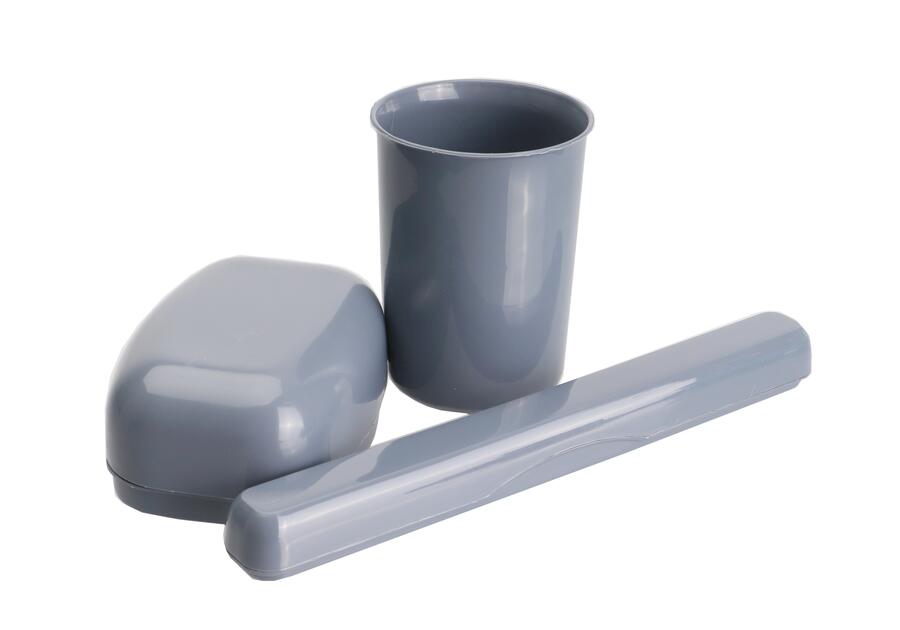 - Rinkinį sudaro: muilo indelis, dantų šepetėlio dėkliukas, vandens puodelis.