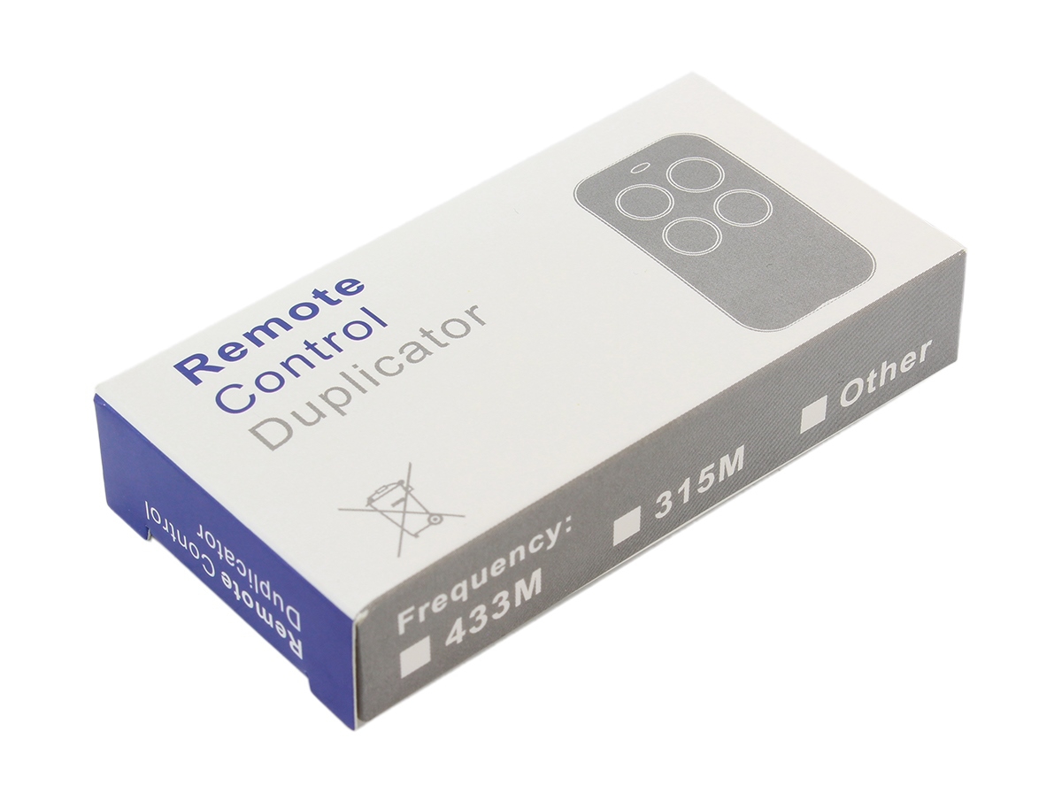 Pastaba: prieš pirkdami, patikrinkite savo įrenginio vadovą ir įsitikinkite, kad nuotolinio valdymo pultelis, kurį norite nukopijuoti, turi fiksuotą / kintamą kodą tinkamame dažnių diapazone! Šis nuotolinio valdymo pultas veikia su kintamu kodu, esant 280–868 MHz dažniui!