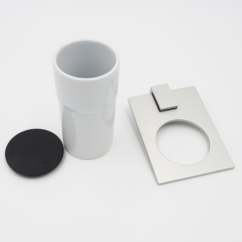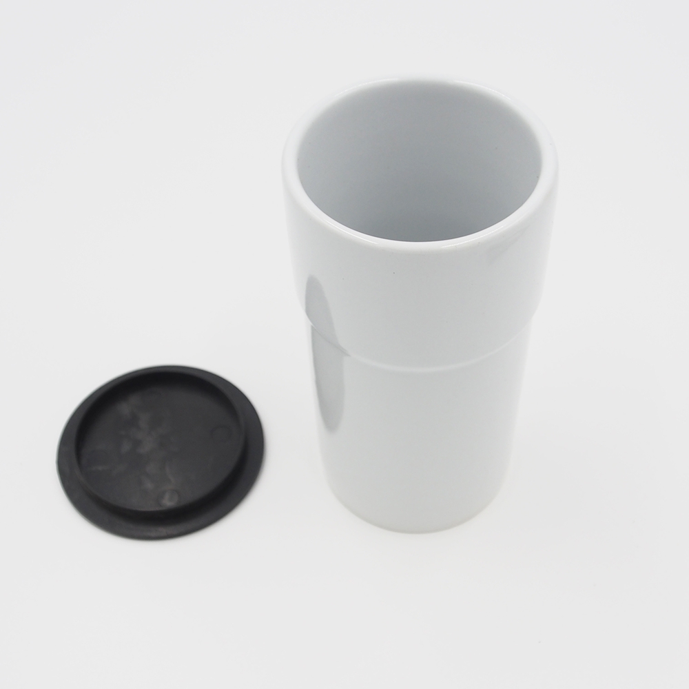 - Keramikinis baltos spalvos puodelis su plastikiniu dangteliu;