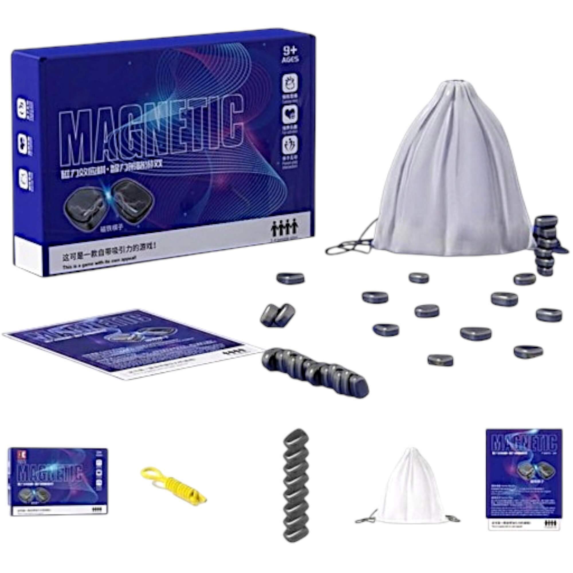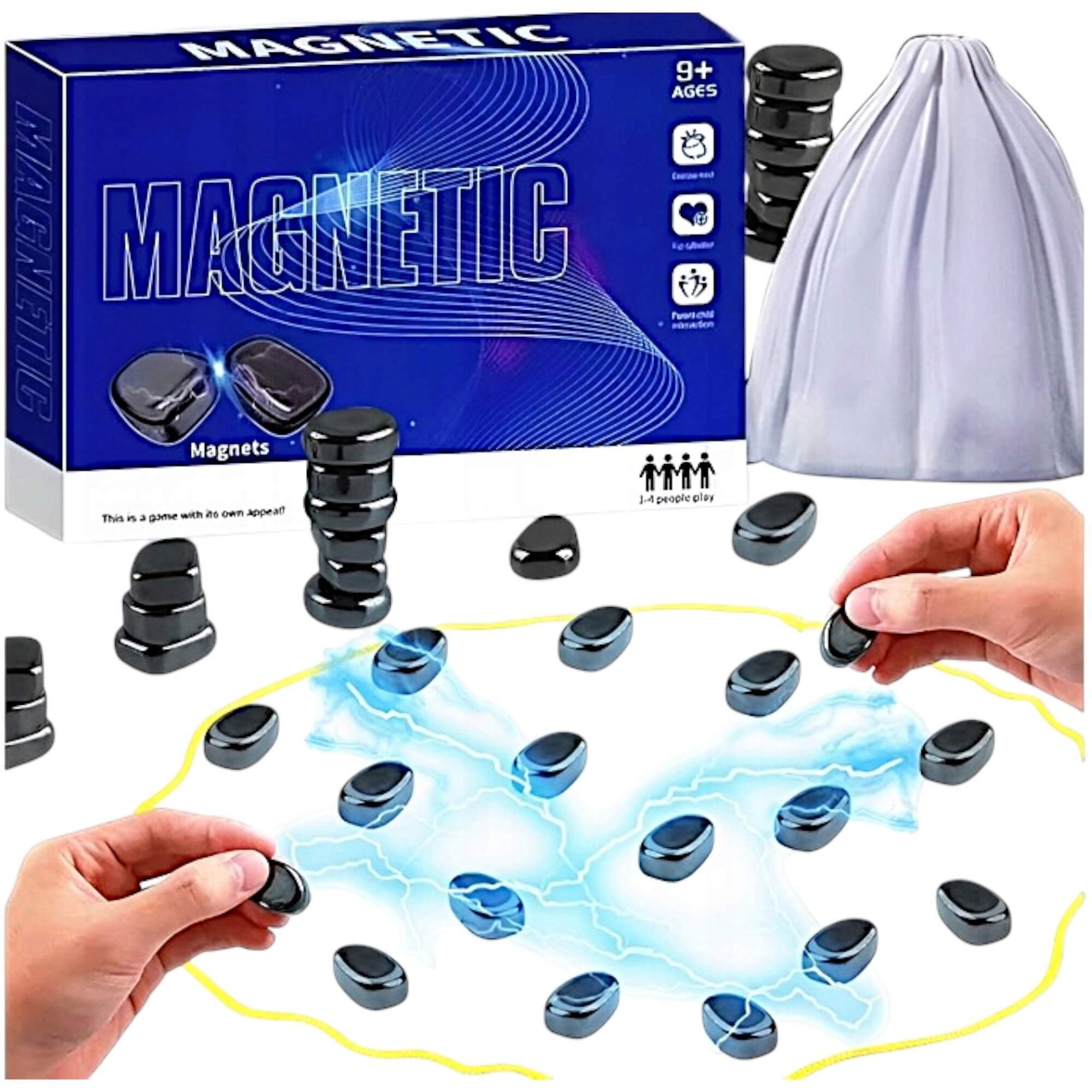 • Paprastos, bet įtraukiančios taisyklės: žaidėjai paeiliui deda magnetinius akmenukus į žaidimo zoną (ant kempinės ar virvute apibrėžto ploto). Tikslas – atsikratyti visų savo magnetų. Tačiau atsargiai! Jei padėjus magnetą jis pritraukia kitus – turite pasiimti visus susijungusius akmenukus sau.